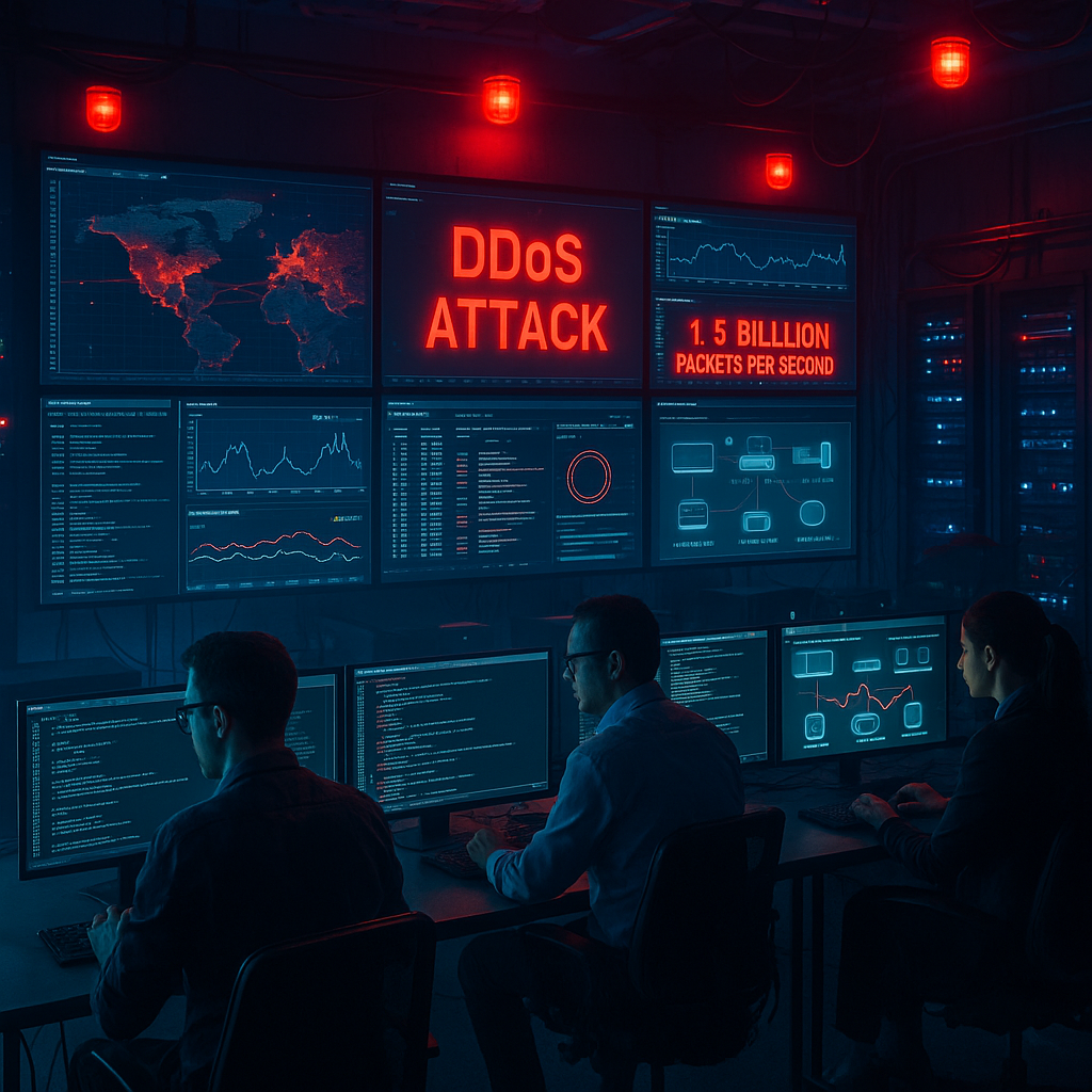 • Record-breaking DDoS volume: FastNetMon reported 1.5 billion packets per second, surpassing previous known attacks in scale.